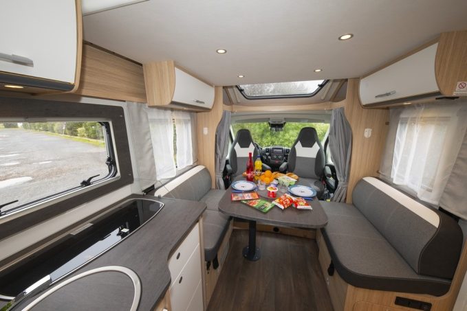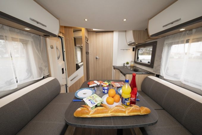 Pour comprendre le caractère inédit du véhicule, il faut monter à bord. Avec un seuil d’entrée situé à plus de 50 cm du sol, l’accès dans l’habitacle s’effectue grâce à un marchepied électrique. On découvre alors un plan qui colle parfaitement à la tendance du marché français, un salon équipé de banquettes latérales en vis-à-vis. C’est la première fois que Sunlight exploite cette disposition pourtant très attendue autant du côté des camping-caristes primo-accédants que des “renouvelants”.