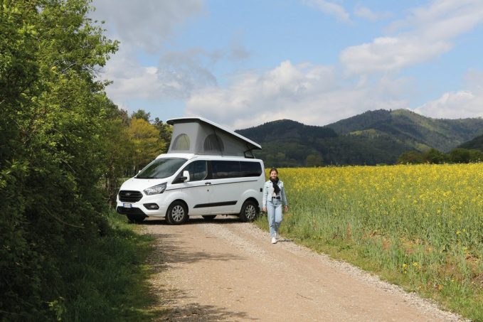 Laika ne ménage pas ses efforts pour faire évoluer sa gamme d’accès Kosmo. Lancée en 2019 avec des profilés, cette série s’est rapidement étoffée avec des capucines, des intégraux et des fourgons. Nous pensions que le toscan allait stopper ses efforts. Nous avions tort. Souhaitant suivre le développement de la tendance van, Laika a développé un aménagement pour un fourgon compact, pourvu d’un toit relevable. Son nom ? Kosmo Urban F100. La base est le Ford Transit Custom de 4,97 m de long. Pour monter à bord, le seuil se trouvant à 55 cm du sol, il faudra prendre son élan ou, plus sérieusement, cocher la case marchepied dans le catalogue des options au moment de la commande (+ 270 €).