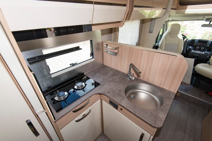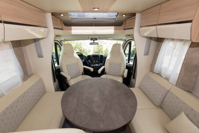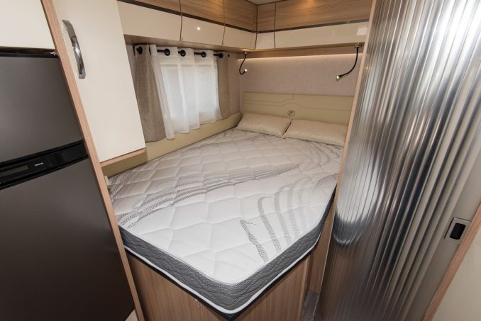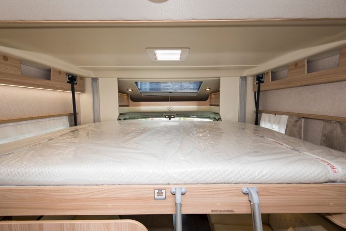 Chez Florium et Fleurette, les implantations avec lit à la française se sont toujours bien comportées face à celles, hégémoniques, à lit central. C’est la raison pour laquelle Florium a lancé un nouveau profilé équipé d’un couchage en long, à la française, qui permet de préserver la compacité du véhicule sans rogner sur le confort intérieur. Ainsi, le Mayflower 70 LD, qui mesure moins de 7 m de long, recèle un magnifique et agréable salon lounge, une grande cuisine très bien équipée, un lit en long donc, jouxtant une salle d’eau à cabine de douche séparée. Retour dans le living constitué de deux larges banquettes latérales transformables assez rapidement et aisément en sièges face route. Ces derniers sont confortables à condition d’avoir de petites jambes : une estrade au niveau des pieds oblige à plier les genoux. Toujours dans le salon, un lit de pavillon est disponible en option pour compléter la capacité de couchages. Un dernier mot pour la salle d’eau, spacieuse, lumineuse, ventilée et munie d’un bac à douche tout polyester d’une grande robustesse.