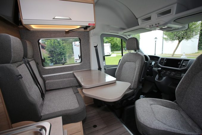 Knaus conserve dans son catalogue 2023, le BoxDrive sur base MAN TGE. Le 680 ME adopte un agencement bien pensé et complet. Cela commence par la table du salon, sans pied, ou encore le cabinet de toilette avec paroi de lavabo repliable vers les WC, libérant ainsi plus d’espace pour la douche. La qualité de fabrication et d’assemblage de la partie de vie n’a rien à envier à celle de la cabine. “Tirée à quatre épingles”, elle propose des aides à la conduite dernier cri.