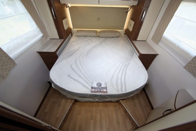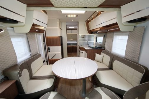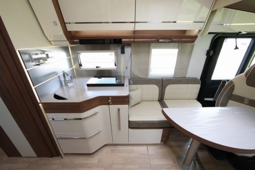 Le grand salon permet à six personnes de s’y retrouver grâce aux deux banquettes en vis-à-vis. L’intérêt d’un poste de conduite intégré dans la cellule prend ici tout son sens. Placé dans le pavillon avant, le second couchage (185 x 135 cm) se fait discret. Et ce, sans que les rangements en pâtissent.