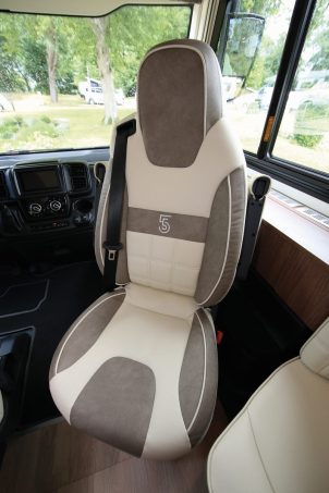Bref, cet espace intérieur respire le luxe dans cette “Edition 55” avec sellerie biton Emocuir avec broderies sur les dossiers, beaux voilages, diffuseur de parfum, combiné de chauffage Truma C6 EH… Ce pack anniversaire complète la dotation d’origine et se montre vraiment attractif pour le client qui économise 3 400 € sur ces équipements ou les réinvestit dans un moteur de 180 ch avec une boîte automatique (option).