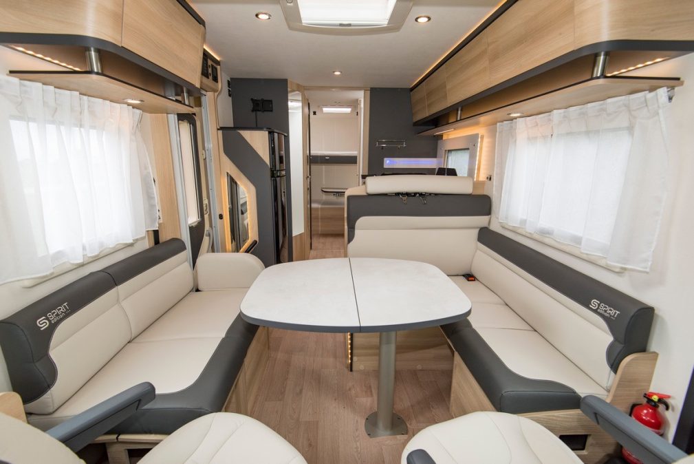 Le salon, pour sa part, se compose d’une longue banquette en L et d’un sofa latéral. Il peut recevoir jusqu’à six personnes et, pourquoi pas, être transformé en couchage de 130 x 200 cm (option). Avec ce coin repas, Itineo mise très sérieusement sur la convivialité à bord. A noter également l'élégant mobilier Urban qui intègre désormais l'ensemble de la gamme d'intégraux. Initiée par les modèles "étroits" Famili Compact, l'atmosphère se généralise à l'ensemble des Famili conservant donc une belle modernité dans la ligne et dans les teintes.