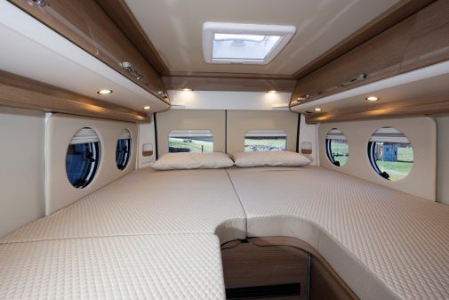 Ce dernier abrite une jolie chambre et loge un matelas de 133 x 203 cm reposant sur un sommier alvéolé en Nylon. Cet espace nuit vient en complément des grands lits spécifiés comme indépendants, même s’ils sont accolés. Vous disposez ainsi de matelas de 86 x 197 cm côté gauche, et 99 x 183 cm côté droit.