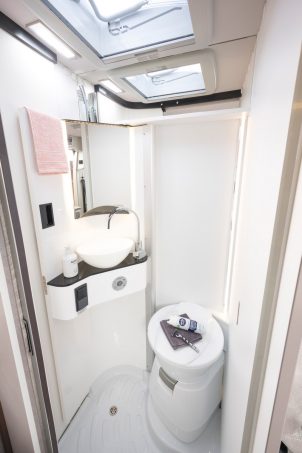 Apparue en 2021, cette nouvelle déclinaison de Summit (salle d’eau modulable à paroi pivotante) se singularise sur deux points : le siège arrière indépendant et le Multiroof. Le premier, qui se justifie pleinement dans le cadre d’un usage à trois, offre plusieurs avantages : un confort meilleur que celui d’une banquette (même si le dossier est un peu top droit) et un encombrement moindre. Il peut être secondé par un deuxième siège, plus petit, mais qu’il faudra remiser à l’étape pour circuler facilement. Sachez qu’il est tout de même possible d’opter pour une assise classique pour deux.