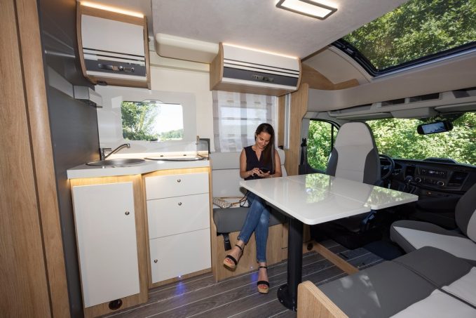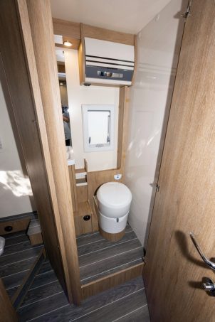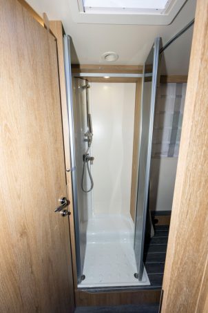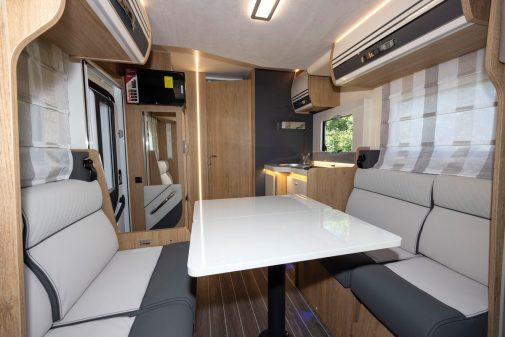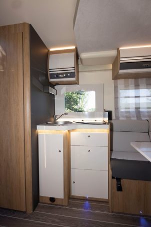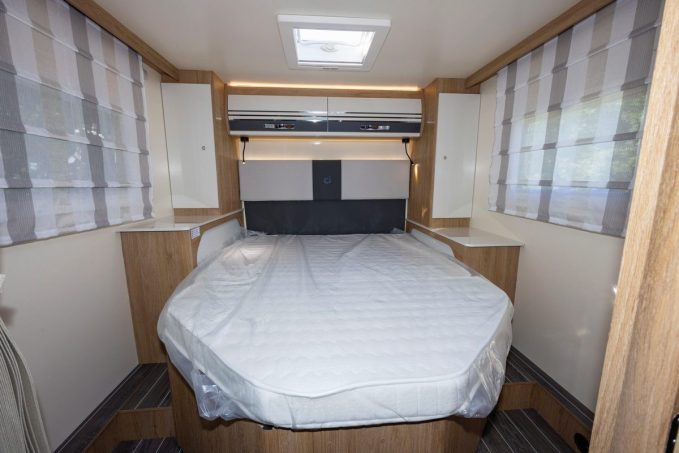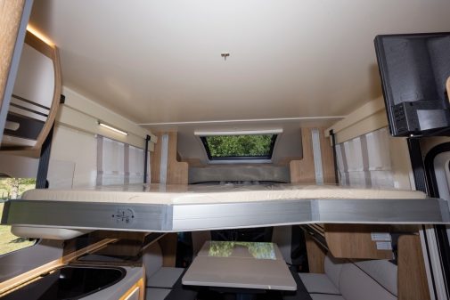 La cellule, particularité de CI, est un assemblage de panneaux sandwich à ossature PVC. Donc aucun risque de pourrissement de la structure en cas d’infiltration. Le constructeur est d’ailleurs si sûr – et fier – de cette technologie, qu’il offre une garantie étanchéité de 10 ans (sous réserve du contrôle annuel de recherche d’humidité). La version Go permet d’origine de bénéficier d’accessoires supplémentaires. Notamment un écran TV et une antenne.