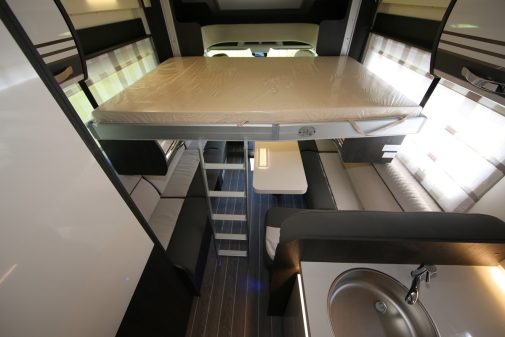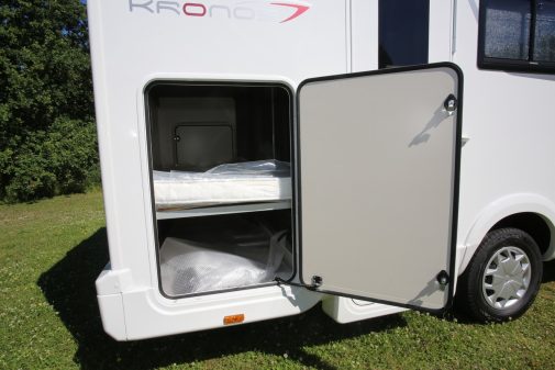 Le Kronos Go 274 TL de Roller Team permet de voyager confortablement à quatre ou six personnes, grâce à une soute convertible pour ajouter deux couchettes (208 x 100 cm) superposées.