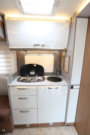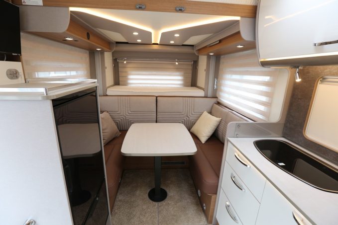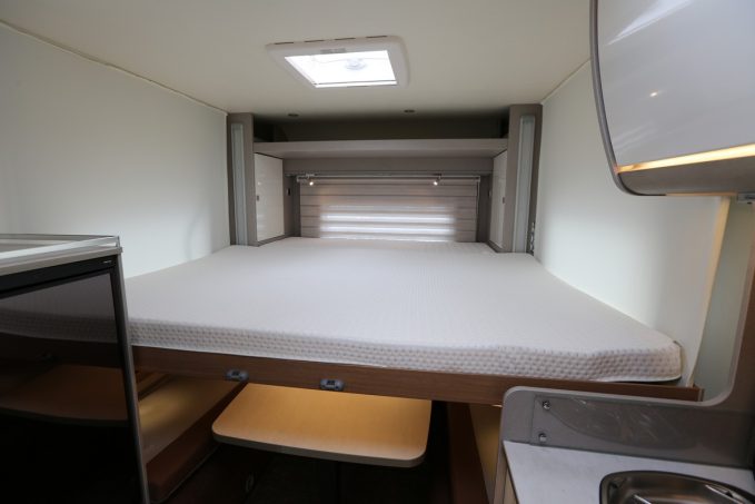 Ce qui fait de ce profilé un vrai 4 places nuit. Très bon point aussi à la cuisine, pourvue d’un grand frigo à compression, capable de fabriquer du froid même lors des étés caniculaires.