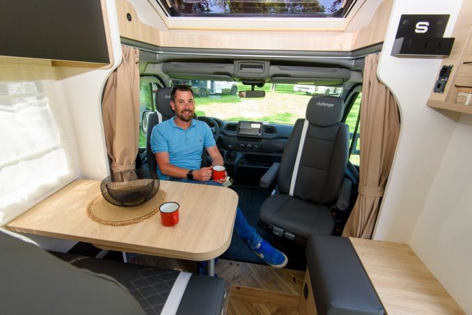 Le Master revient en force avec deux profilés, dont celui-ci sur 6,25 m de long, le S194. Challenger conserve cette volonté de concurrencer l’univers du fourgon, la largeur étant de 2,10 m seulement. Outre son prix raisonnable de 61 990 € en motorisation de 145 ch, le S194 propose une implantation agréable et habitable, malgré son étroitesse.
