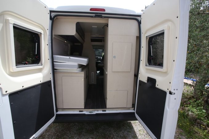 On rompt le suspense : la singularité de ce fourgon réside en partie arrière… L’avez-vous deviné ? Il s’agit d’un lit à la française implanté donc dans le sens de la longueur.