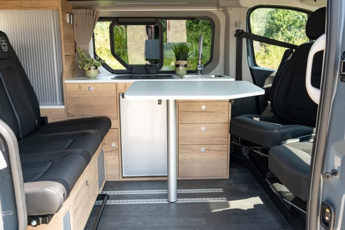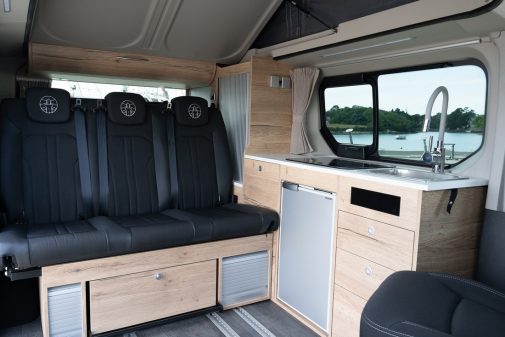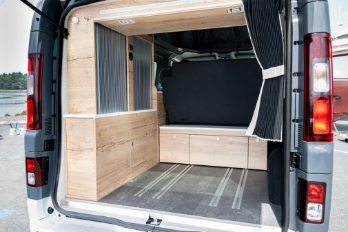 Comme tous les produits Glénan Concept Cars, l’Horizon Van Up est équipé d’un toit relevable dont la toile s’ouvre sur 180° pour offrir une vue panoramique aux personnes allongées sur le lit haut.