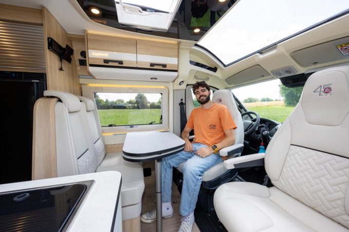 Nouveauté de l’année, ce 643 est disponible en édition spéciale 45 ans (la version Limited a été écartée du catalogue, mais une définition standard, moins équipée, a fait son apparition). Une série qui, bien sûr, apporte son lot de spécificités. A bord, l’ambiance Natural est associée à une sellerie Dakota exclusive, tandis que les accessoires (robinets, poignées de meubles, spots…) sont habillés d’un noir mat du plus bel effet. La carrosserie est revêtue d’une peinture métallisée (gris fer ou Artense) et repose sur des jantes en alliage noires. Enfin, à bord, l’équipement est enrichi du pack Confort+ en série (sièges cabine Captain Chair, bouclier avant peint, moustiquaire, multimédia, caméra de recul…).