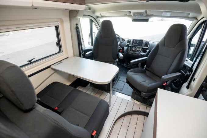 En dînette, la banquette se transforme en lit. Un élément intéressant, car cela évite l’emport de coussins supplémentaires pour constituer un couchage d’appoint.