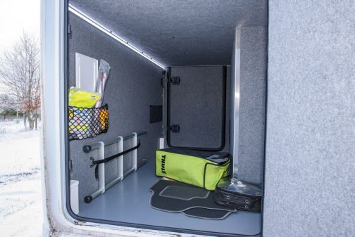 Nous avons pu tester l’Ostrava JF, suivant un itinéraire entre les départements de la Lozère et du Puy-de-Dôme, en plein hiver. Il nous a donc fallu affronter quelques routes fortement enneigées et des températures nettement inférieures à 0 °C. Si ces frimas ont été un calvaire pour les mains de notre photographe, ils furent une aubaine pour tester l’isolation du profilé. La cellule profite du procédé NCIS pour “Notin Composite Inaltérable Système”. Traduction : parois, plancher et toit sont revêtus, sur les deux faces, de polyester, matériau résistant aux impacts dont ceux occasionnés par les averses de grêle. Entre ces feuilles composites, est enfermé du polystyrène extrudé (Styrofoam) en guise d’isolant. Bas de caisse et cornières sont, pour leur part, en aluminium.