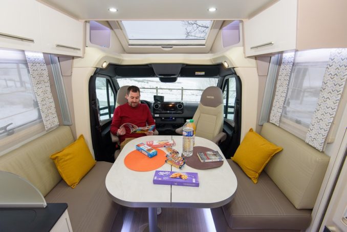 Les constructeurs Notin et Mercedes s’associent régulièrement et ce, depuis plusieurs décennies. On les retrouve notamment dans les intégraux de la gamme Excel, mais aussi, avec la nouvelle génération du Sprinter, sur les profilés en 3,5 t de PTAC de la prestigieuse gamme Exclusiv. Ainsi, y trouve-t-on deux modèles de même longueur (7,35 m) : les Ostrava CF à lit central et JF à lits jumeaux (Notin s’est tourné vers la République tchèque pour leur “nom de baptême”).