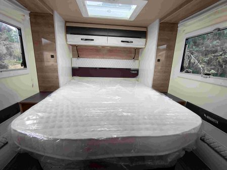 Si ce Kéa P90 ne regorge pas de nouveauté, Mobilvetta s’est attelée à le peaufiner chaque année depuis son renouvellement en 2021. Pensé pour quatre personnes, il accueille à son bord trois lits, dont un lit centrale arrière de 194 x 150 cm, un lit de pavillon de 190 x 128 cm et un lit dînette de 96 x 212 cm. Il faut d’ailleurs noter que le lit de pavillon est une option facturée 1 000 €.