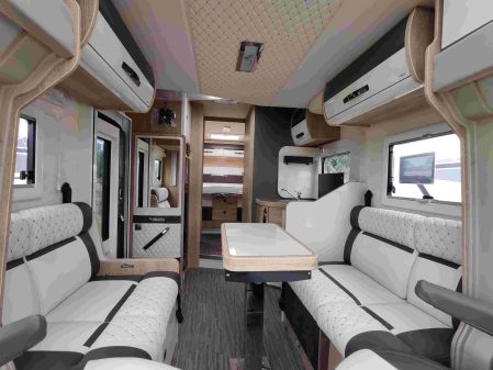 Ce modèle, commercialisé à partir de 63 990 € propose de série le nouveau porteur Fiat Ducato 140 ch ajoutant ainsi une nouvelle calandre peinte au profilé. Avec ce châssis, le véhicule est équipé des commandes radio au volant et d’un pommeau de levier de vitesse et du volant en cuir de série.