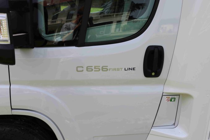 Extérieurement, le C656 First Line présente un stickage sobre. Le pavillon culmine à 3,06 m de haut la plaçant en classe 2 au péage autoroutier.
