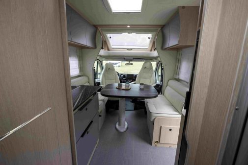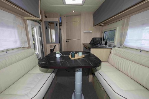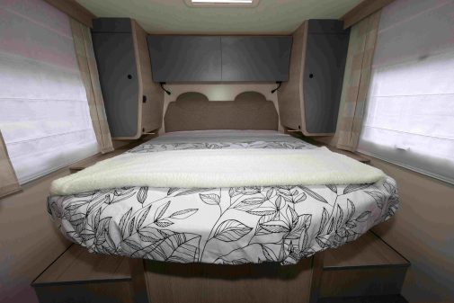 Plus qu’un nouveau profilé intégrant la gamme Privilège, le P740 LC participe au rajeunissement de la marque. Ce modèle sur Fiat Ducato est doté d’un double-plancher technique de 15 cm qui permet, outre le fait d’améliorer l’isolation de la cellule et de placer hors gel les faisceaux de câbles et le réseau de plomberie, de créer une surface plane à l’intérieur, de la cabine jusqu’à la chambre.