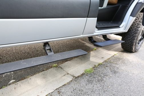 A commencer par sa hauteur de 3,10 m, qui rend l’engin particulièrement impressionnant. Deuxièmement, c’est la première fois que Pössl aménage le Mercedes Sprinter. Troisièmement, l’ensemble est un off-road avec tout l’attirail requis : grosses jantes chaussées de pneumatiques ad hoc, châssis généreusement rehaussé (d’où la hauteur totale) et transmission intégrale associée au moteur le plus puissant du Sprinter (4-cylindres 2.2 de 190 ch) et à l’excellente boîte de vitesses automatique à 9 rapports. Pas vraiment le genre de joujou que l’on attendait de la part de la sage marque allemande… Toutefois, pas de panique, le sérieux est toujours au rendez-vous.