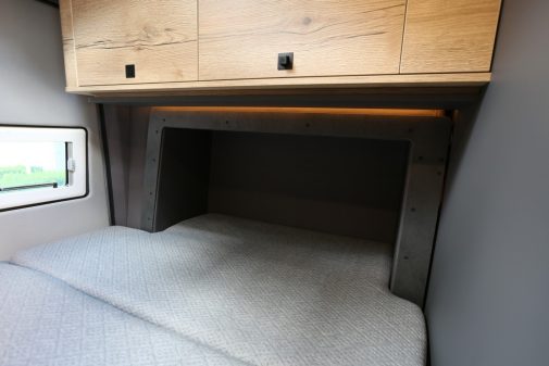 Autre spécificité de ce Pössl Roadstar X : la présence d’un slide-out électrique sur le flanc gauche. Cette extension permet, à l’étape, d’allonger le couchage transversal jusqu’à 2,08 m (pour une largeur de 1,45 m).