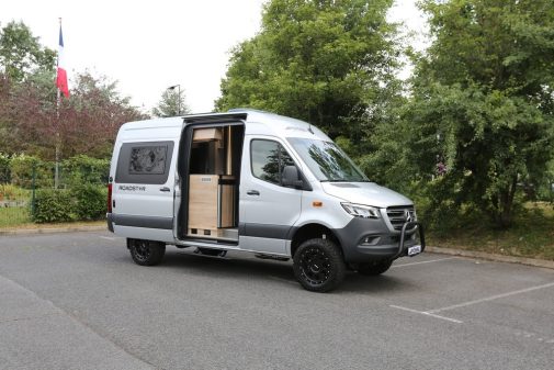 De loin, et sans surprise, le Roadstar X est le plus onéreux des fourgons aménagés par Pössl : il atteint près de 109 000 € quand la majorité des modèles de la marque reste cantonnée sous les 65 000 €. La facture est lourde. Pourtant, ce modèle est le plus abordable des off-road en Mercedes Sprinter 190 ch. D’autant plus qu’il profite d’une belle dotation de série qui comprend un système multimédia de haute volée avec caméra de recul, les sièges de cabine chauffants, le frein à main électrique, les phares et essuie-glaces automatiques, la batterie lithium 100 Ah, le chauffage sur carburant de 6 kW, les stores de cabine occultant et bien d’autres choses encore.