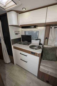 Dans un camping-car neuf, il flotte généralement une odeur assez peu agréable de colle et de bois. Mais cette mauvaise sensation ne se produit pas lorsqu’on passe la porte XXL de la cellule du Migrateur 69 LJG Wellness. La raison en est toute simple : dans la cellule de ce modèle -qui s’inscrit dans la série limitée “bien-être”, un dispositif masqué diffuse une agréable fragrance bergamote. Reconnaissons que cet agréable accueil olfactif place le visiteur dans une situation de… bien-être.