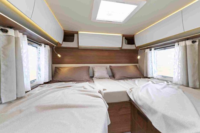 Pour améliorer le confort et l’utilisation, Laika a pensé à tout. Allant jusqu’à installer un matelas ergonomique en Biolatex (une mousse à mémoire de forme qui épouse parfaitement les corps des personnes). Le L 2009 Titanio est exploitable toute l’année, y compris en plein hiver, grâce à son isolation performante (XPS haute densité), à son double plancher et à son chauffage central de 6 kW.