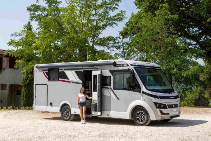 Le Nevis 881 sera commercialisé uniquement en Edition 25, au tarif de 84 770 €, avec un haut niveau d’équipements : panneau solaire 200 W, stores de cabine, jantes alliage 16’’, douchette extérieure, store auvent, etc.