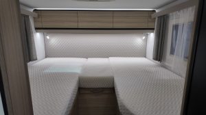 La partie arrière du Compact DL fait la part belle à des lits jumeaux, dont la qualité du couchage n'est plus à démontrer. La raison ? L'utilisation d'un matelas avec revêtement Tencel, avec notamment un rembourrage en mousse haute résistance. La température ambiante est optimisée par un chauffage Truma. Reste désormais à évoquer l'aspect tarifaire, où trois options sont de la partie : la version Axxess, au tarif de 71 900 € ; la finition haut de gamme Supreme, à 79 900 € ; et enfin une itération 60ème anniversaire, ici en photos, au prix de 70 900 €.