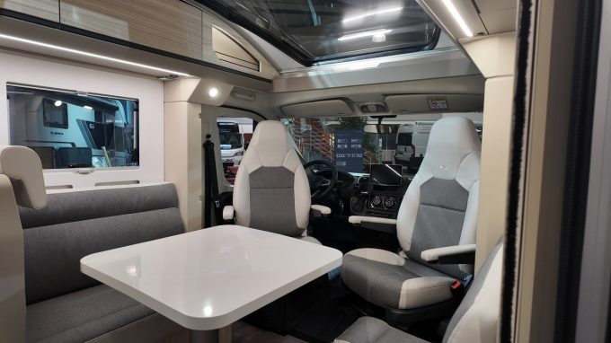 Mais là où le Compact DL enfonce encore un peu plus le clou, c'est sur la qualité de son implantation. Etablie sur les sept mètres de longueur du véhicule, elle se distingue par une ambiance particulièrement chic. L'impressionnant skyroof n'est évidemment pas étranger à ce sentiment qu'on ressent dès qu'on pénètre à l'intérieur de ce véhicule, en donnant une luminosité naturelle agréable au niveau du salon face-face.