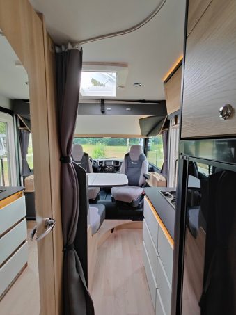 Le tout en s'appuyant sur les qualités et l'espace à bord propres à un intégral : le meilleur des deux mondes, en quelque sorte. D'autant que l'implantation du CM 660, développée sur la base du Peugeot Boxer dans une largeur d'un peu moins de 2,20 mètres, se montre agréable à l'usage. Une banquette face route avec une extension en L compose par exemple le salon, auquel il convient évidemment d'ajouter les deux sièges pivotants de la cabine.