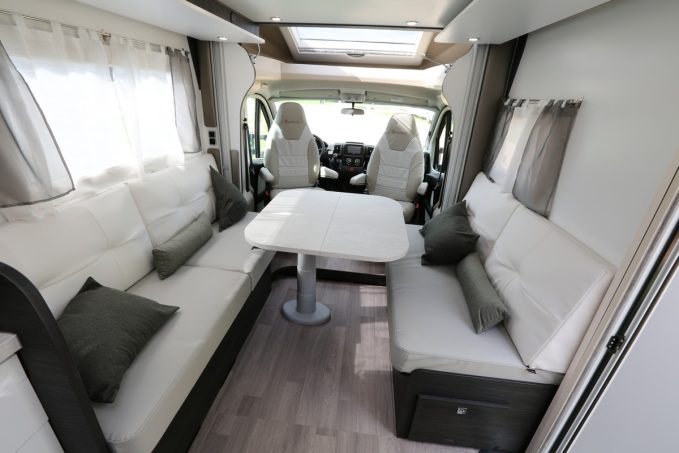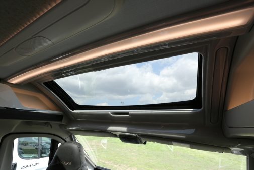 Benimar a également fait évoluer ses fourgons avec des innovations importantes apportées dans l’habitacle, pour plus d’espace. Le plafond voit les rangements au-dessus de la cabine supprimés, ce qui permet d'augmenter la hauteur et d'intégrer, sur le haut de gamme, un sky roof ouvrant.