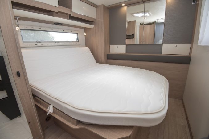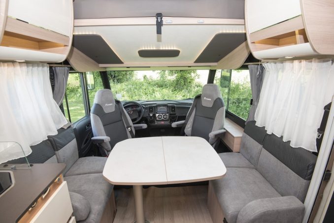 Côté profilé, la marque continue de proposer deux modèles de 7,43 m avec lit central et lits jumeaux. Tous deux adoptent en partie avant un salon avec banquettes en vis-à-vis. En revanche, cette année, le PJ740 (profilé avec lits indépendants) a subi de grandes transformations notamment sur le cabinet de toilette.