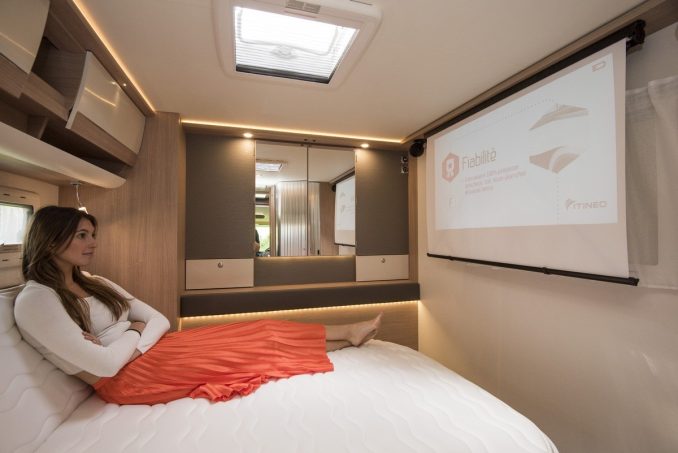 Le constructeur mayennais Itinéo a toujours aimé surprendre. Le bureau de l'étude de la marque nous gratifie depuis plus d'une décennie désormais d'implantations originales mais toujours très réfléchies. Cette saison, la marque ressort des placards un agencement ancien mais remis au goût du jour par une multitude de rangement notamment ou avec l'incontournable salon face/face. Baptisé RC 740, cet camping-car est un intégral de 7,43 m qui se distingue par sa partie arrière. En effet, ce véhicule inédit adopte bel et bien un lit central, mais positionné dans la largeur du véhicule. Pour faciliter les déplacements des occupants, le sommier et le matelas coulissent pour libérer une plus grande largeur de couloir. Enfin, le bout arrière de la cellule est occupé par une penderie si grande que le terme de dressing serait plus approprié pour l’évoquer. Un espace de rangement qui repose sur une vaste soute garage. Cet intégral RC740 est poroposé à 59 300 € avec la motorisation de 140 ch.