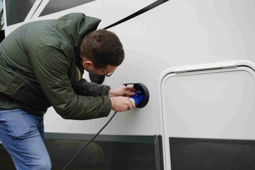 Une fois trouvée votre aire, place aux choses sérieuses : manœuvrez votre camping-car, dans le but de positionner la vanne de vidange en aplomb de la grille. Un véritable exercice de précision qu’il vaut mieux réaliser à deux, pour bien se placer et éviter un obstacle éventuel caché dans un angle mort…