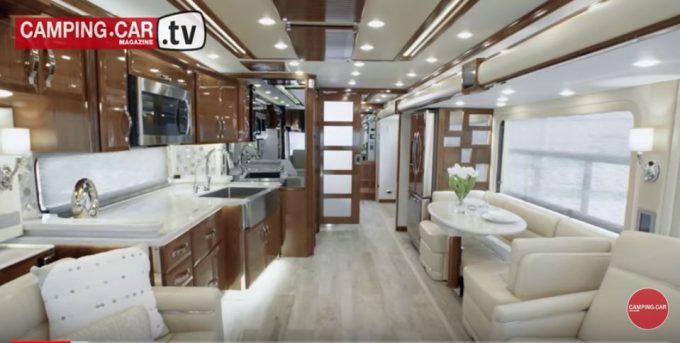 Les américains sont les rois pour construire des motorhomes gigantesques. S'ils ne sont pas franchement prévus pour circuler sur les routes de France, ces gigantesques camping-car nous font rêver. Nous avons donc réaliser une vidéo qui vous montrent quelques très belles réalisations conçues outre Atlantique. Et puisque qu'en Europe aussi nous avons quelques constructeurs capables de fabriquer des mastodontes, nous avons joint à notre montage deux modèles très haut de gamme réalisés outre-Rhin. Un document fait pour rêver un peu. Découvrez maintenant notre Top 6 des plus beaux motorhomes du monde.
