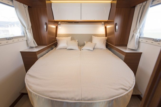 Il n’en fallait pas plus pour aiguiser notre curiosité et prendre le volant du Distinction i96 Premium Edition. Par son implantation et son traitement intérieur, ce modèle de 7,54 m sur châssis Al-Ko double plancher incarne parfaitement le haut de gamme à la française.