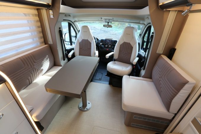 La cabine gris métallisé, identité de la finition Privilège. © Camping-car Magazine