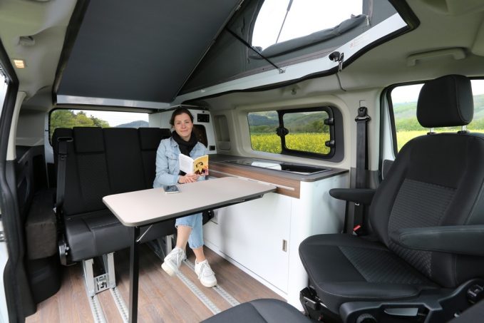 Le véhicule est sur base Ford Transit Custom, il mesure 4,97m de long, 1,99 m de large et 2,09 m de hauteur. Il est commercialisé dans cette version à 51 199 euros. A l'étape comme sur route, il peut accueillir 4 personnes.