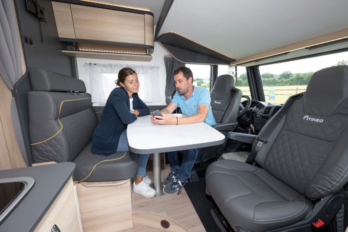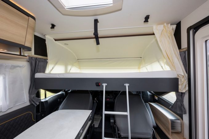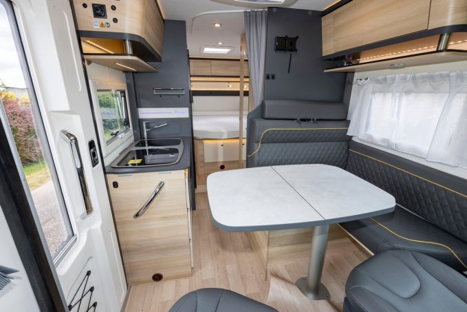 Avec une longueur de 6.61 m et une largeur de 2.19 m, ce véhicule compact possède de nombreux points forts. Il possède 4 places routes et également 4 place couchage, idéal pour une famille de 4 personnes. La salle d'eau Duo'Space présente une paroi pivotante pour optimiser les espaces. Côté cuisine, un grand réfrigérateur de 128 L prend place à côté de l'évier et du réchaud deux feux.