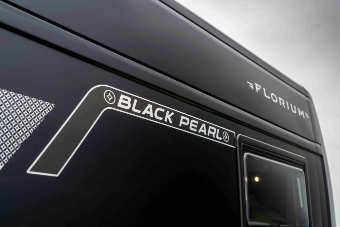 Contrairement à sa carrosserie sombre, l’intérieur du Black Pearl est baigné de lumière. Ambiance bois clair, teintes naturelles et éclairage bien pensé créent un espace chaleureux et contemporain. Le mobilier s’inspire des profilés Baxter et Mayflower. Clairement, Florium s’inspire de son savoir-faire dans les profilés et les intégraux pour penser ce premier fourgon.